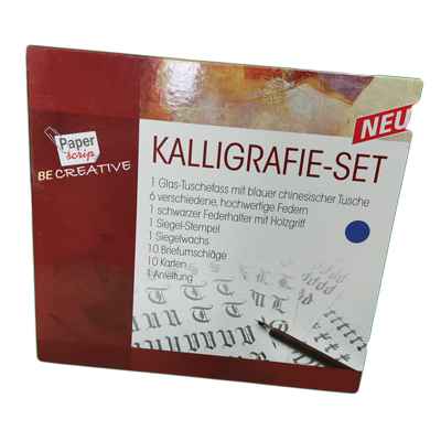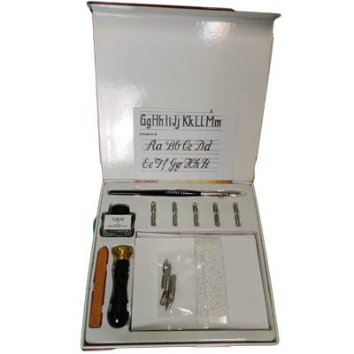- Kaligráfia készlet tintával, borítékkal, levélkártyával, viasszal és boríték pecséttel